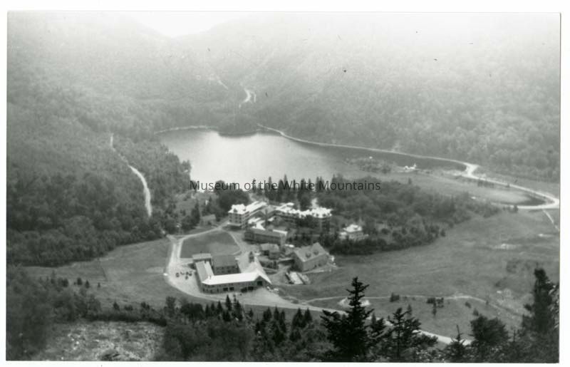 Aerial view of the Balsams Hotel and Lake Gloriette, taken from Table Rock. Photograph taken by Orrin Stiles of Milan NH, who worked as the hotel's chauffer between 1911-1912.
