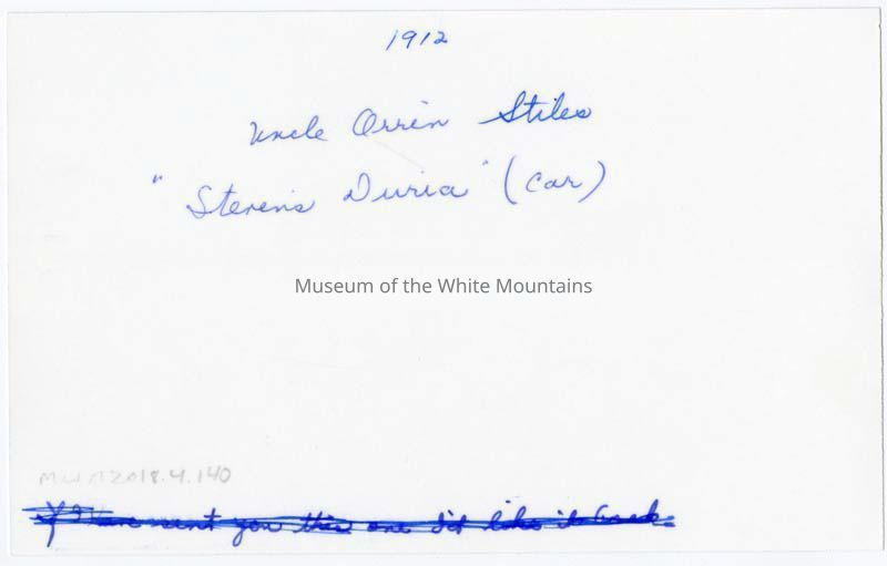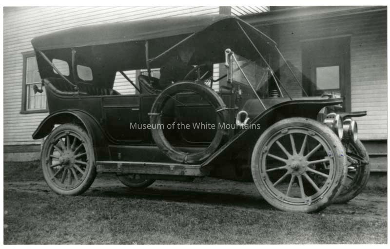 Photograph of a man in a vehicle at the Balsams Hotel circa 1912. Orrin A. Styles of Milan, NH is the chauffer. Photograph owned by Orrin Stiles of Milan NH, who worked at the hotel between 1911-1912.