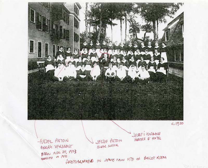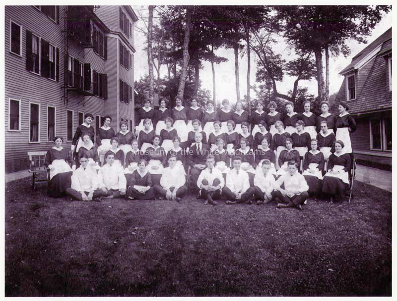 Photograph of male and female employess at the Balsams Hotel circa 1920.
