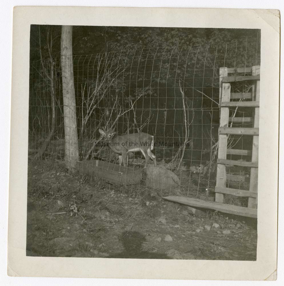 Photograph of a deer behind a fence at the Balsams Hotel Deer Park.