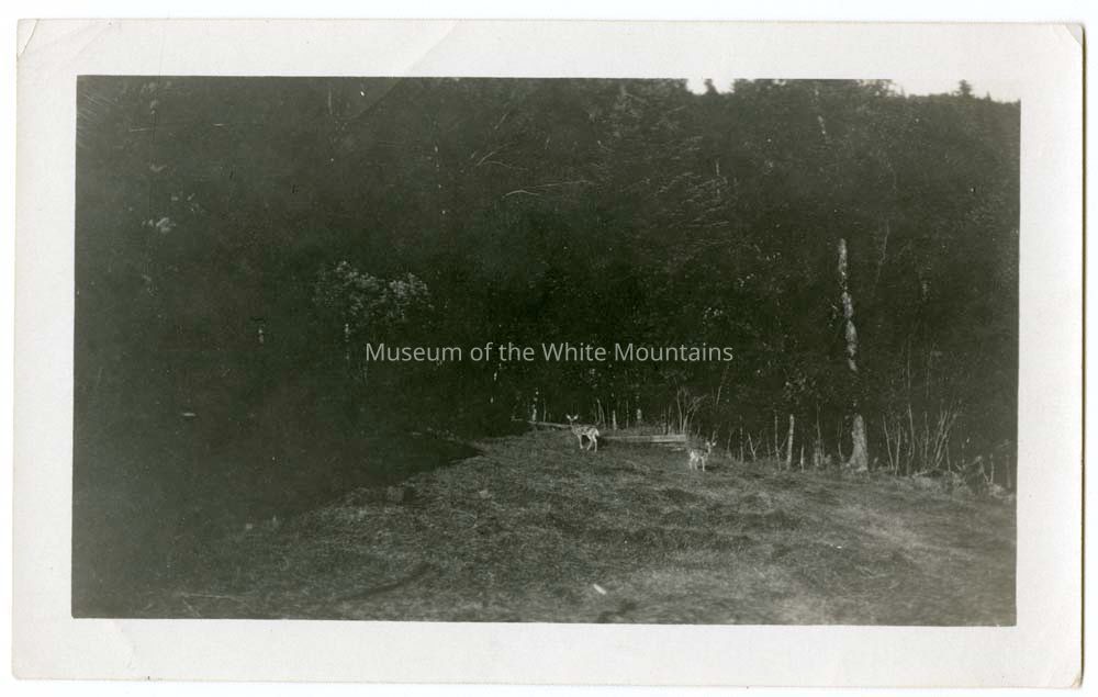 Photograph of two deer in a field in the Deer Park at the Balsams Hotel.
