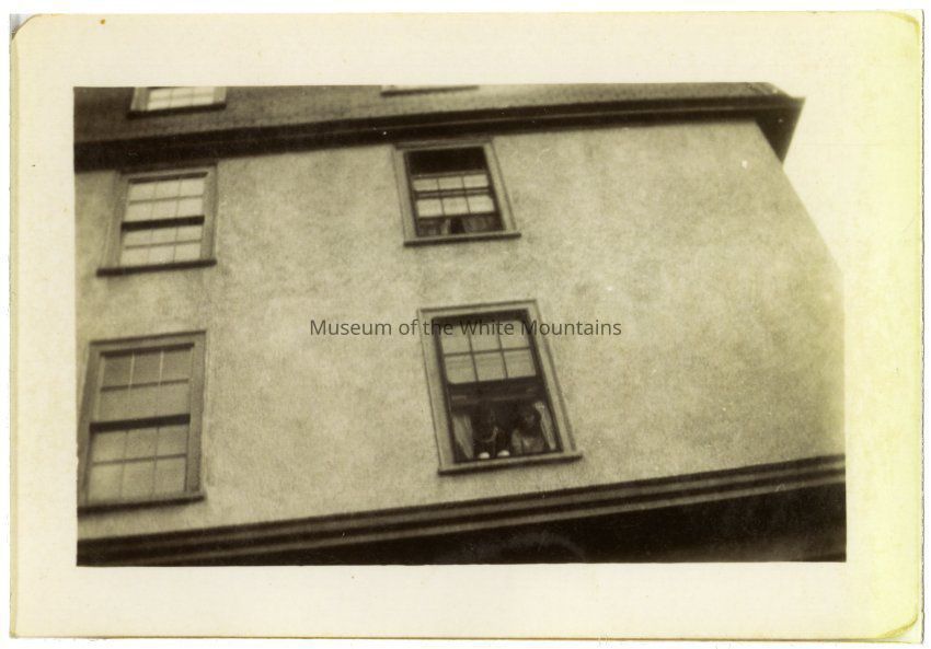 Photograph of two women looking out a window of a building at the Balsams Hotel.