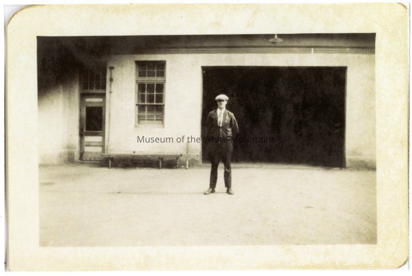 Photograph of a man standing in front of a parking garage at the Balsams Hotel.