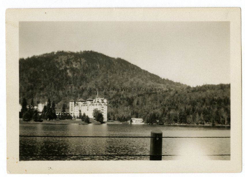 Photograph of the Balsams Hotel taken from across Lake Gloriette.