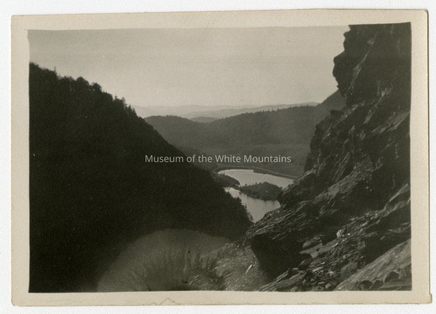 View of Lake Gloriette through a rocky ledge in the Dixville Mountains.