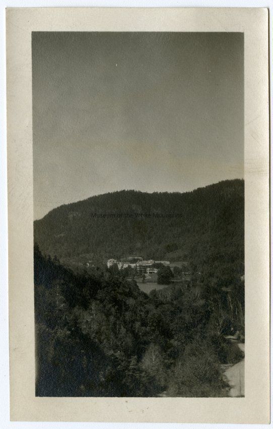 Photograph of the Balsams Hotel surrounded by the Dixville Mountains.