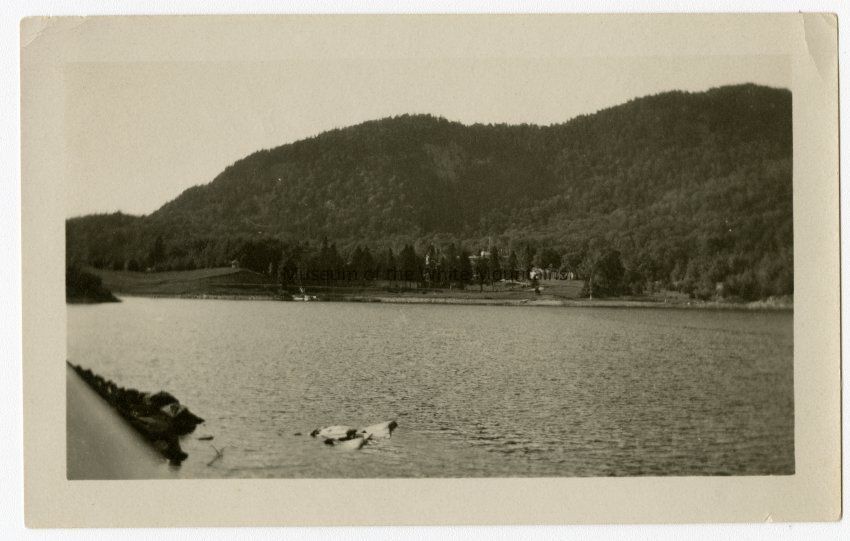 Photograph of the Balsams Hotel taken from across Lake Gloriette.