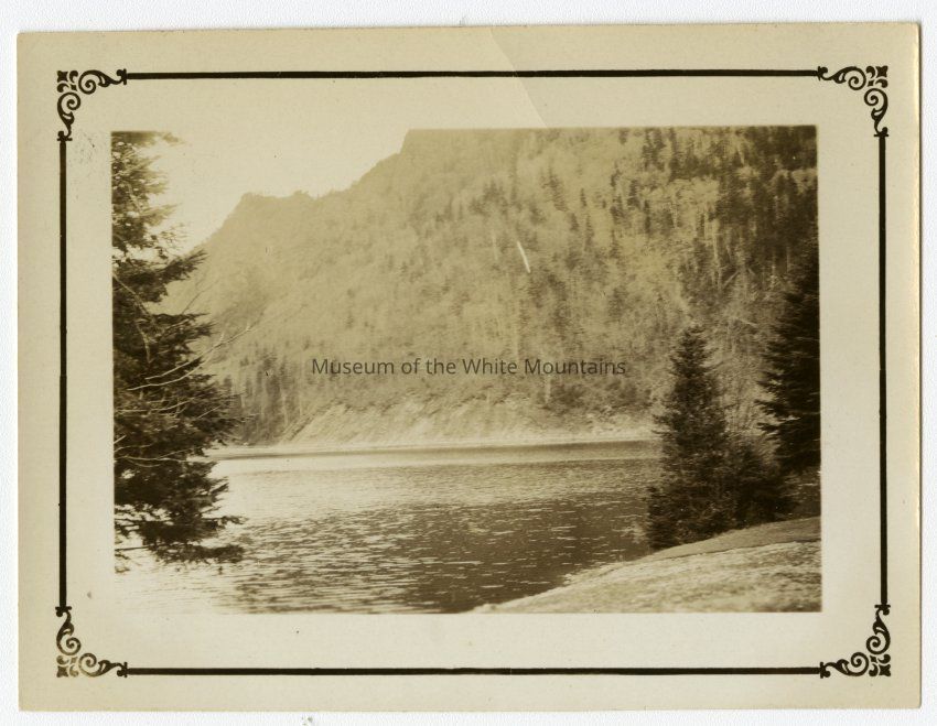 Photograph of Lake Gloriette with a decorated frame around the image.