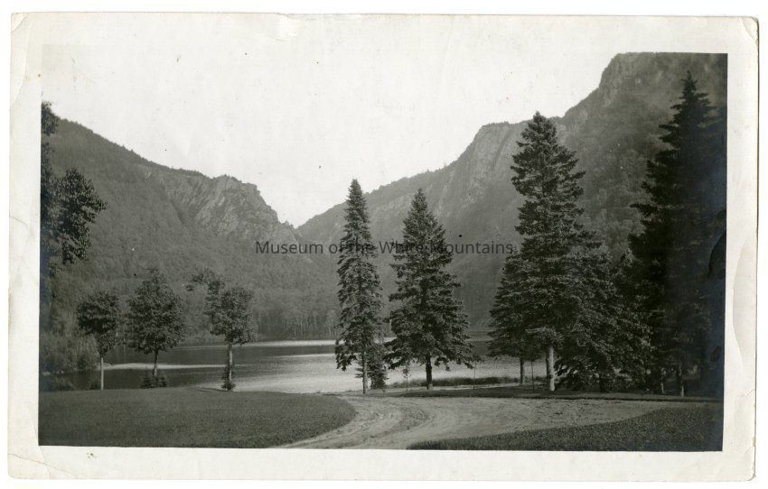 Photograph of Lake Gloriette beneath the Dixville Mountains.