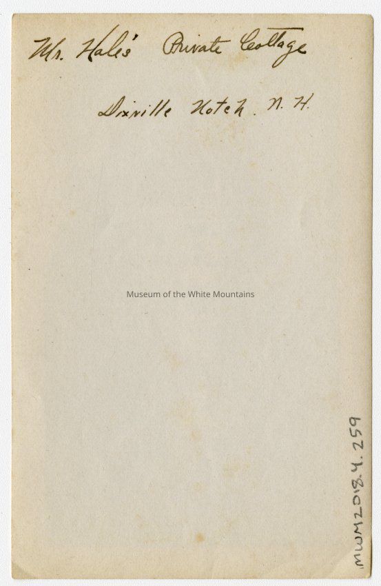 Photograph of Mr. Hale's private cottage in Dixville, N.H. It was known as Hale Cottage until 1912 and then renamed Wind Whistle.