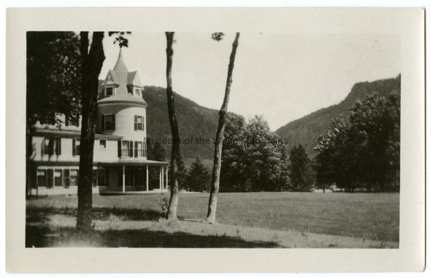 Photograph of the Balsams Hotel with Dixville Notch in the background.