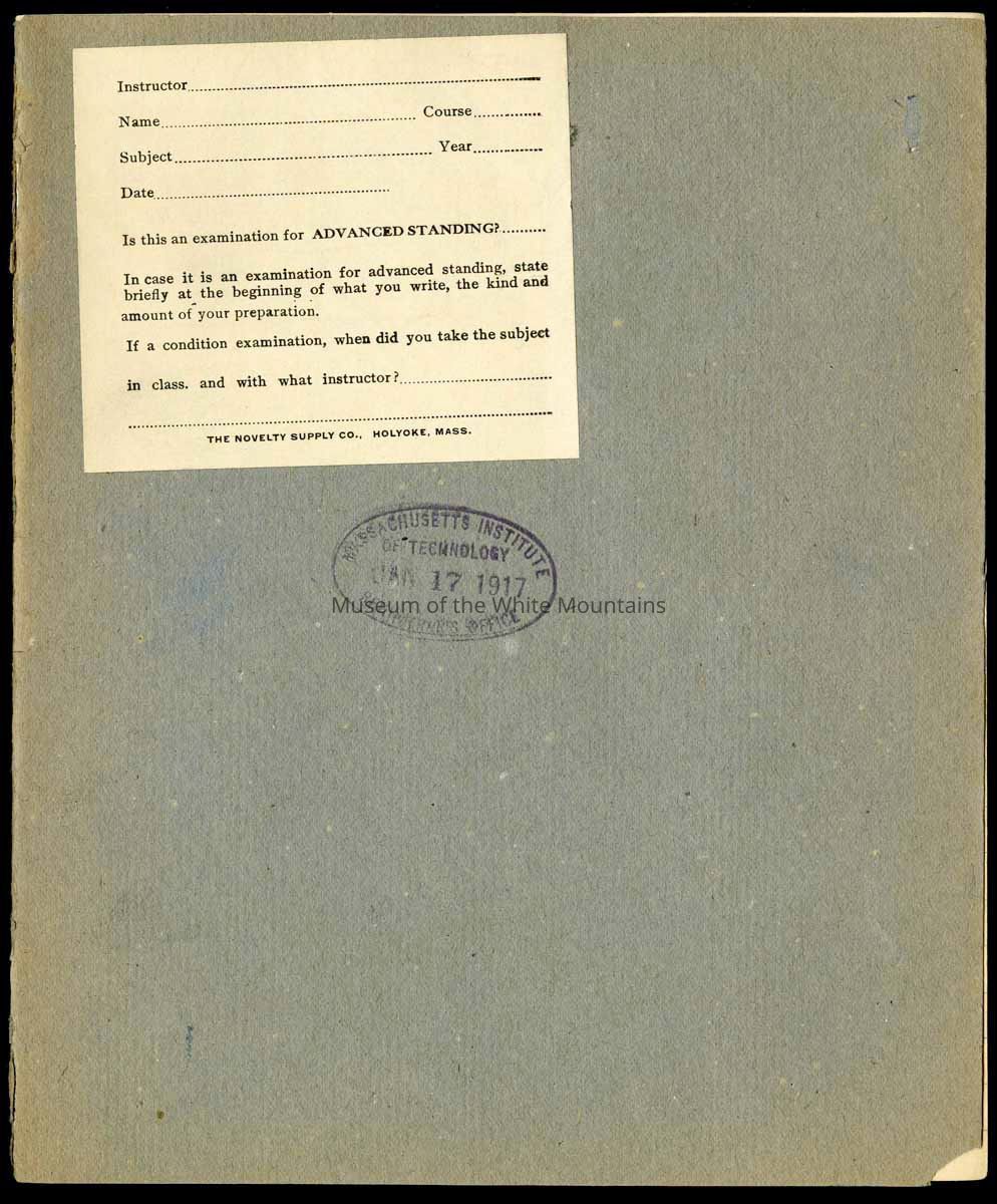 Item is a blue examination book of Walter H. and Ida Rachel's 1916 trip. The writing is mostly illegible. Found within their 1914-1916 journal.
