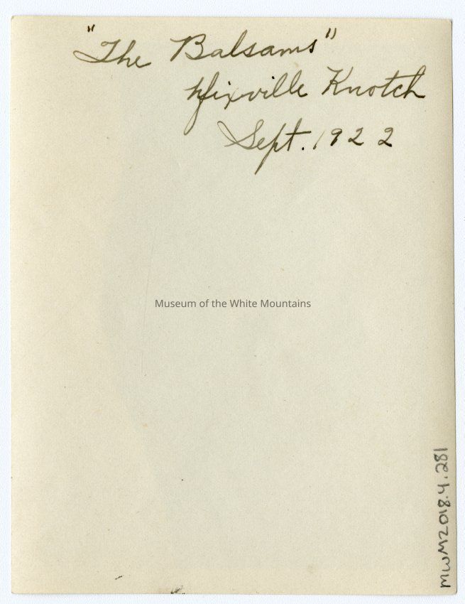 Photograph of the Balsams Hotel from across Lake Gloriette. This photo was taken in September of 1922.