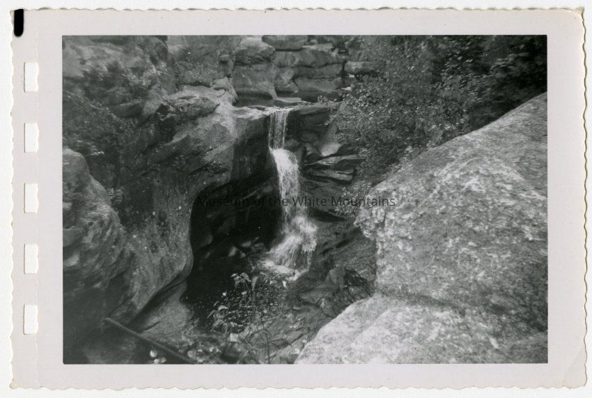 Photograph of a small waterfall in the woods of the Dixville Mountains.