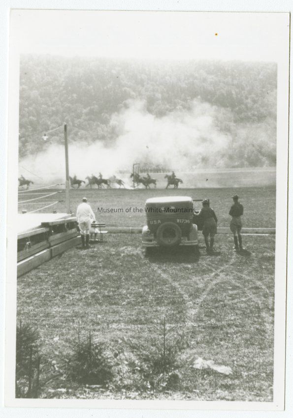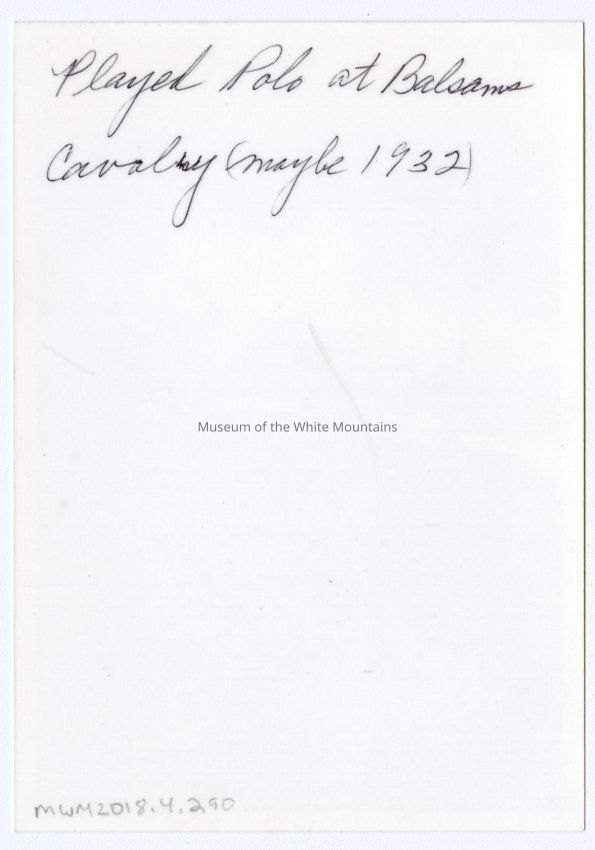 Photograph of people playing polo at the Balsams cavalry, circa 1932.