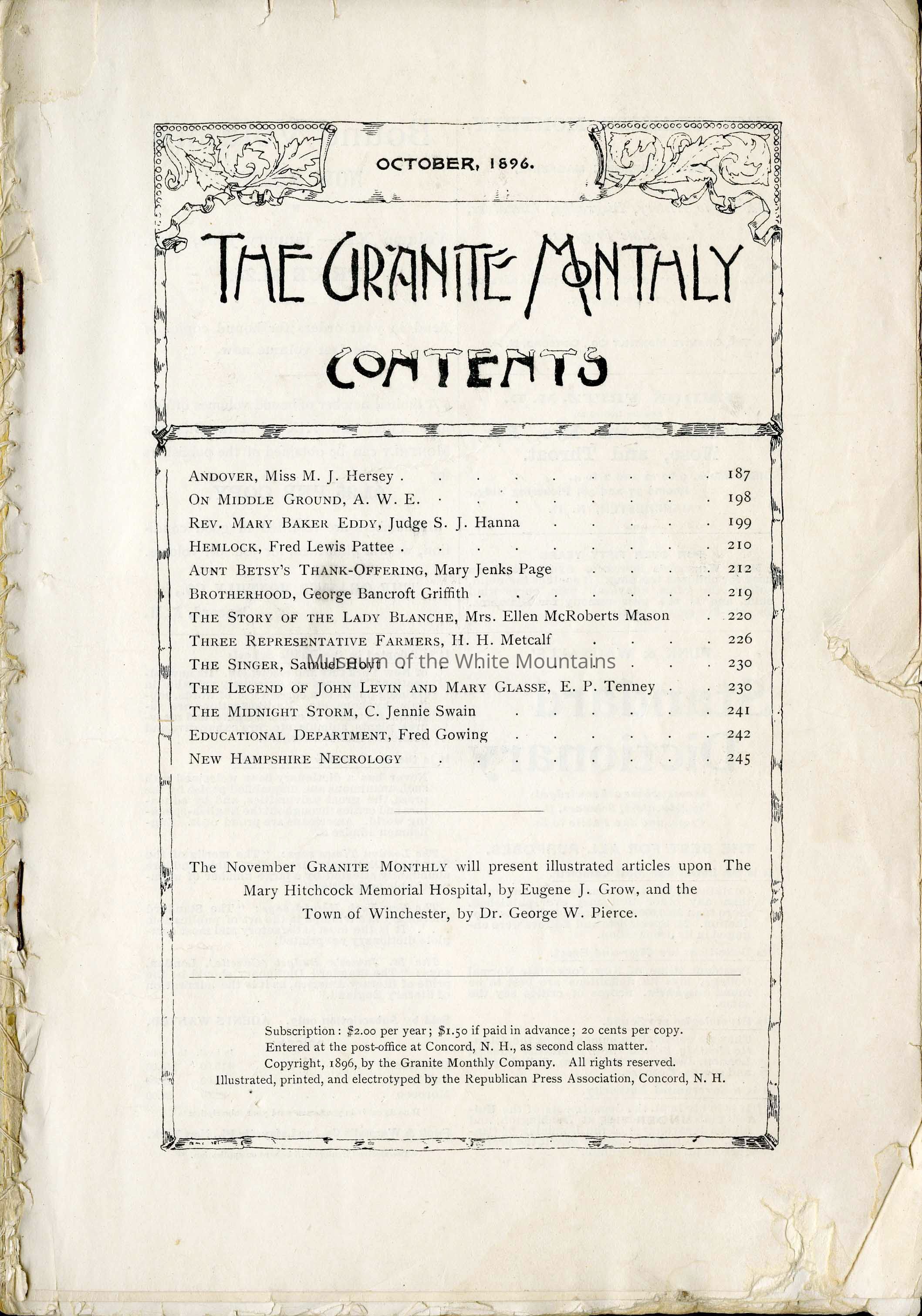 The Granite Monthly: A New Hampshire magazine devoted to: history, biography, literature, and state progress.