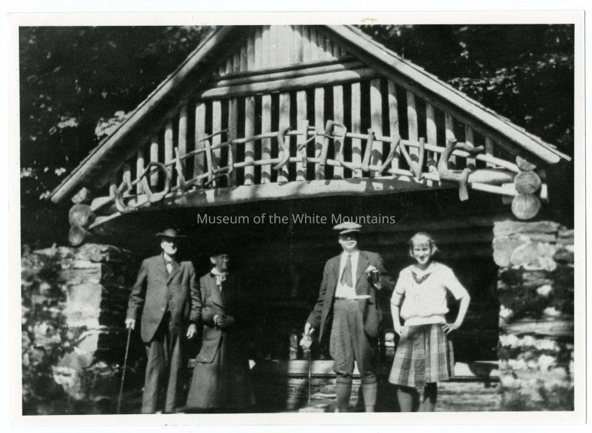 Photograph of a group of people standing in front of the cold spring in Dixville Notch.