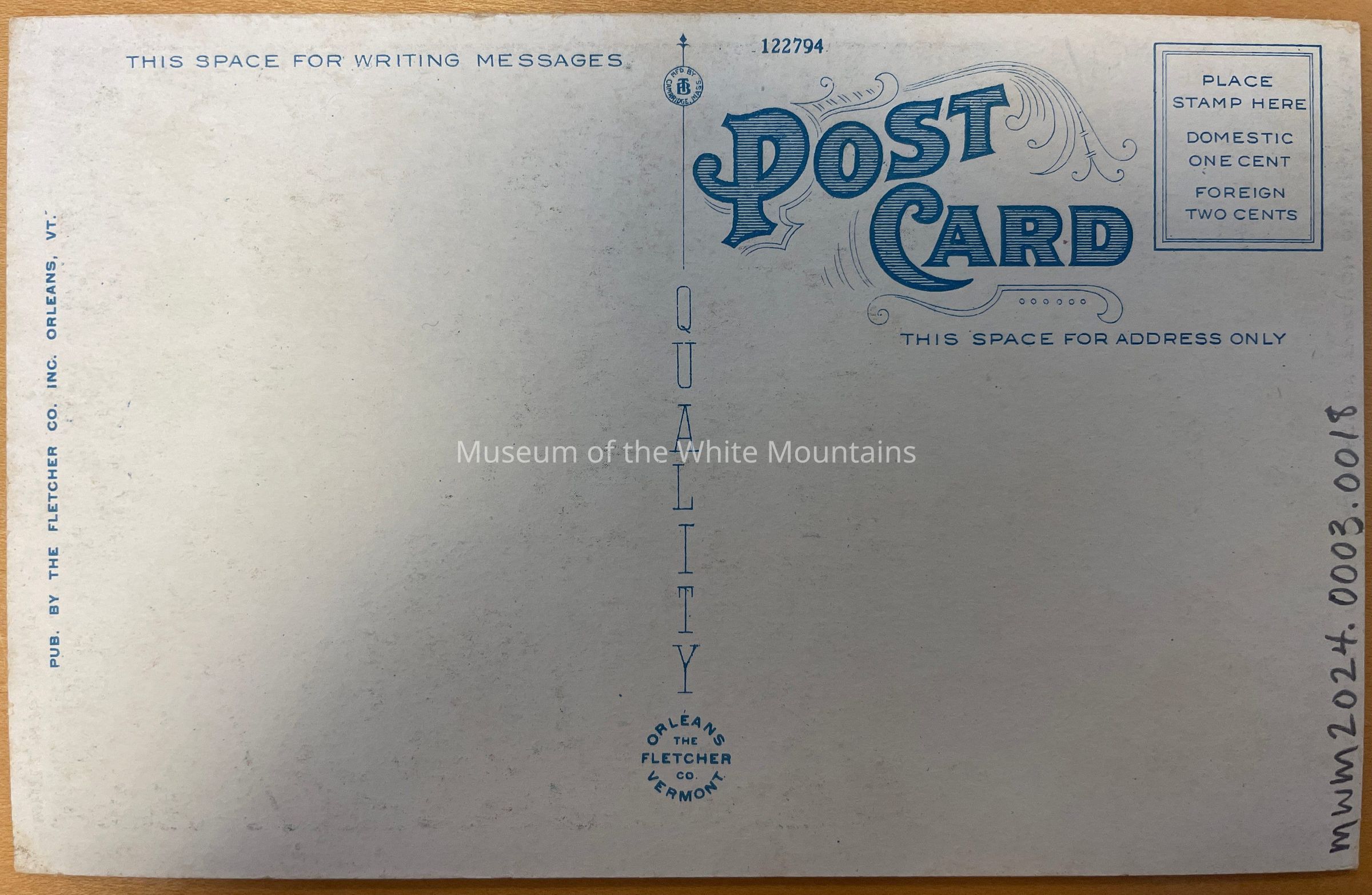 Back Description: Typical postcard back. Features an empty postmark and empty postage stamp. No transcription.Subject