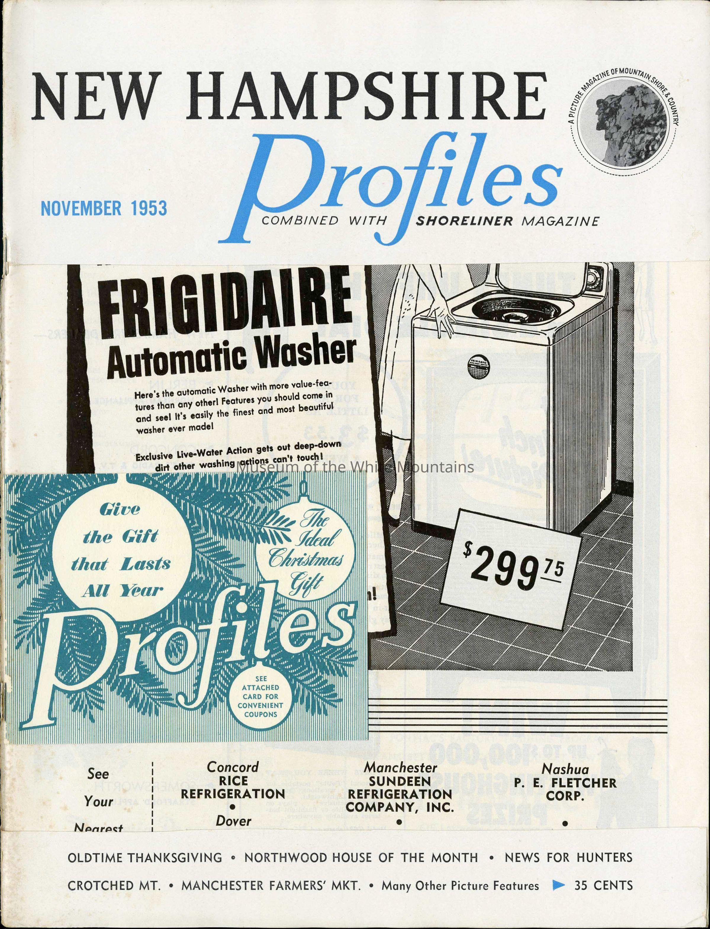 New Hampshire Profiles combined with Shore Liner Magazine. A Picture Magazine of Mountain, Shore, and Country. Contents: In Addition to Faith - By Paul E. Estaver New independence for crippled children at Crotched Mountain Foundation.