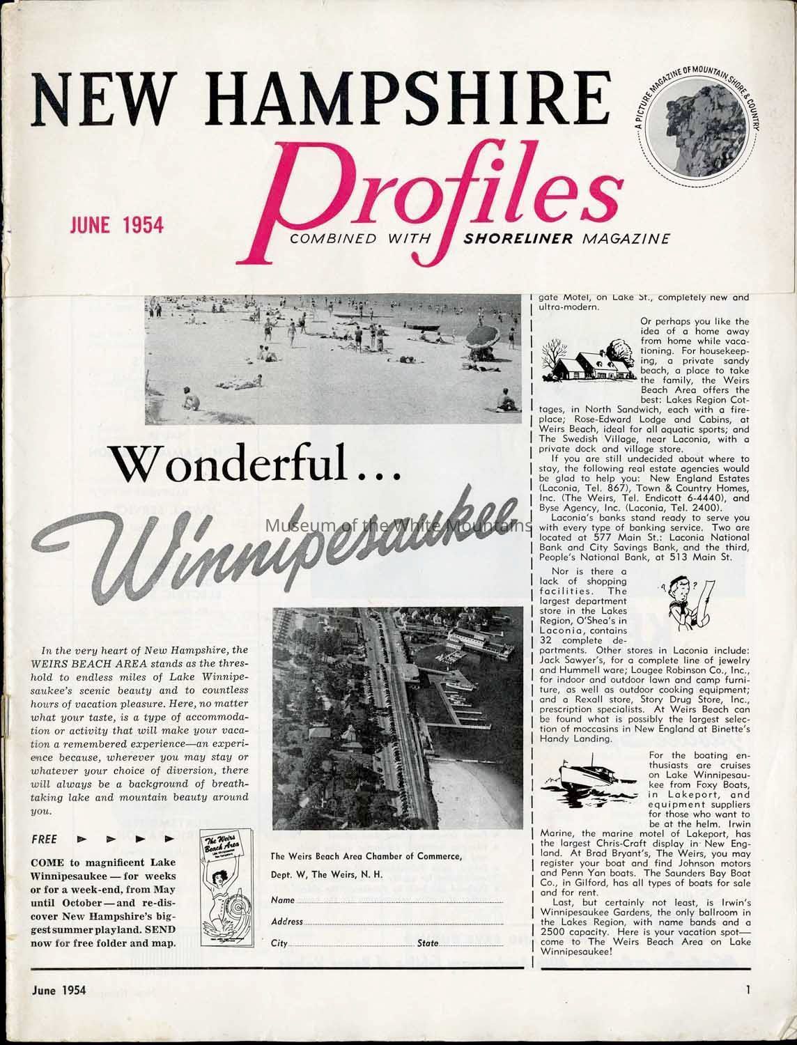 New Hampshire Profiles combined with Shore Liner Magazine. A Picture Magazine of Mountain, Shore, and Country. Contents: What About Edgcomb Steel? - by George B. Flint, Jr. The present and future of an extremely important Granite State industry. Seven Thousand Covered Bridges Color pictures are "sending" New Hampshire's famed bridges all over the world. Island of Inspiration - Reverend David W. Edmunds Star Island--the only known island in the world exclusively devoted to religious purposes.