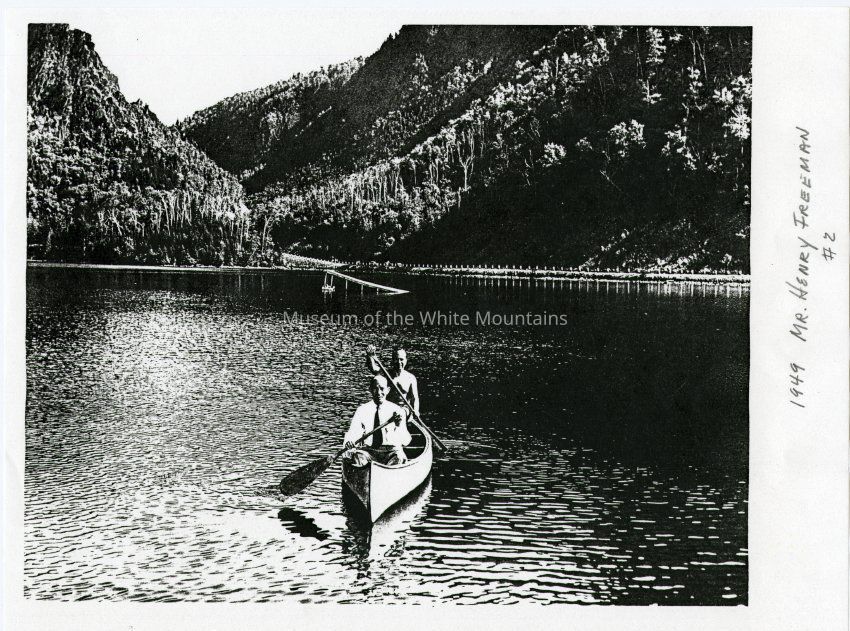 Photograph of Mr. Henry Freeman along with another man riding in a canoe on Lake Gloriette.