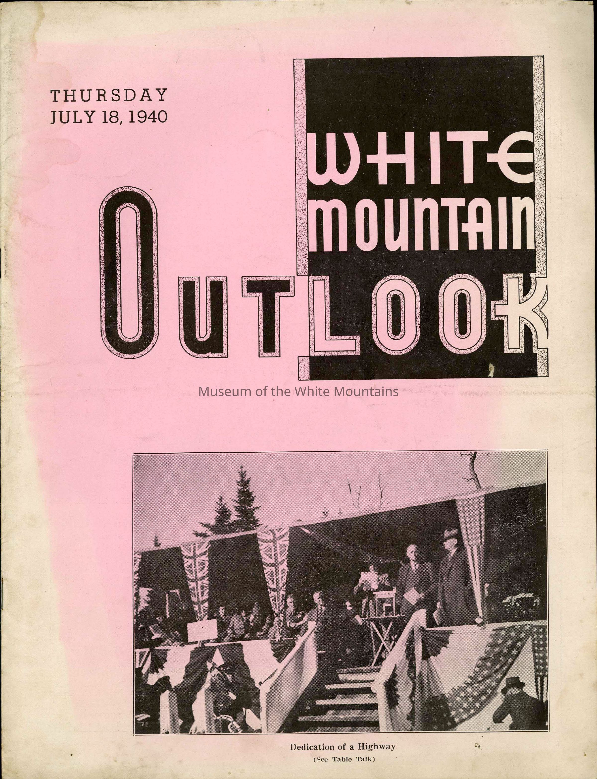 White Mountain Outlook: Published weekly during the summer season at Bethlehem, New Hampshire and distributed throughout the resort area. Volume 10, Number 1.