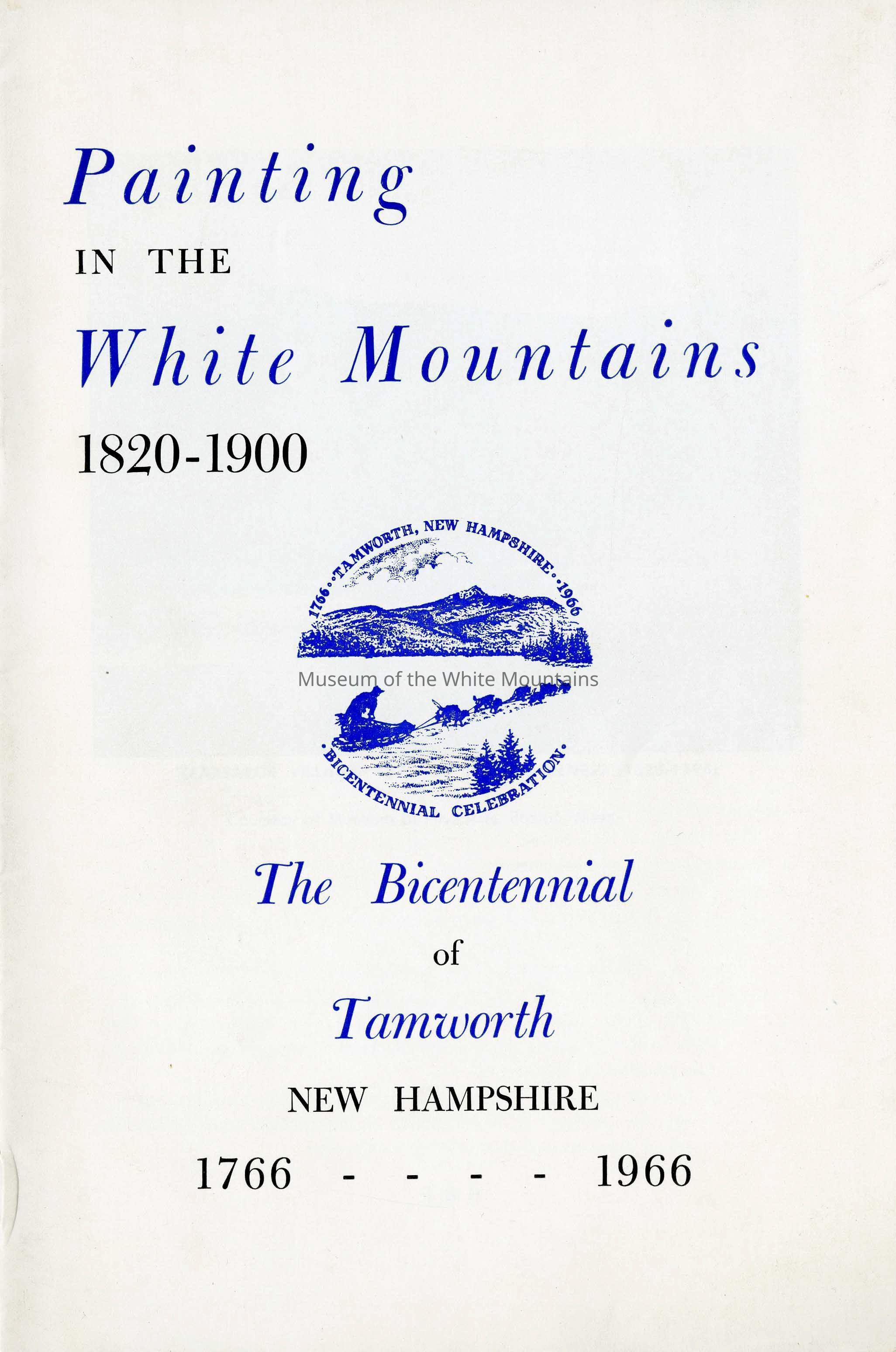 This small catalog presents a list of the19th century paintings exhibited at the Tamworth, NH Bicentennial Art Exhibit. It includes 90 paintings by 52 artists, on loan from private collections and art museums. The subject of several of the paintings is the scenery of Tamworth.Collection
