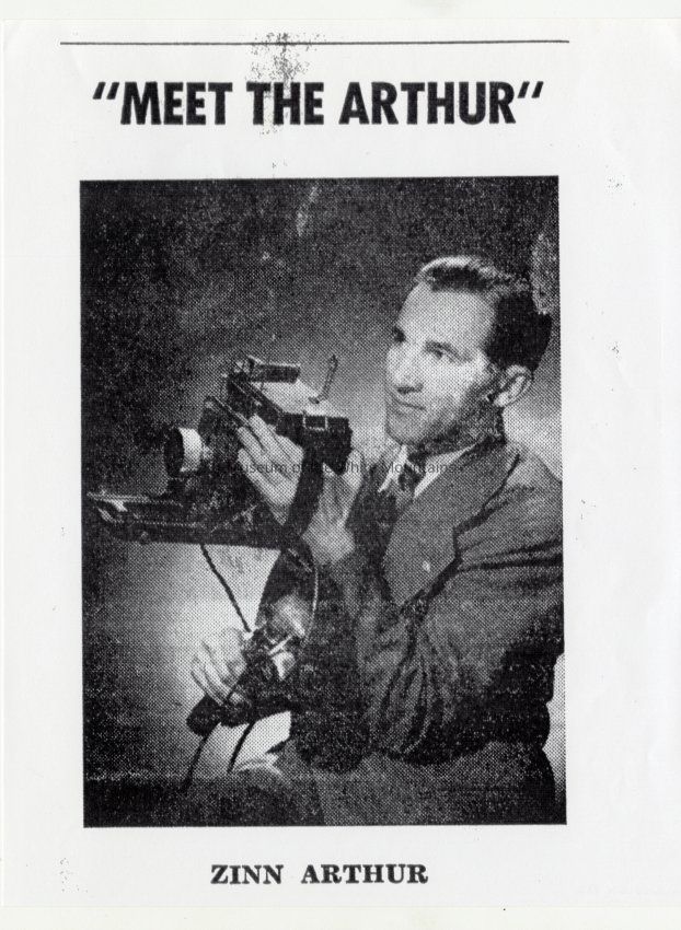 Image of Zinn Arthur, celebrity photographer, posing with a camera. Xeroxed copy.