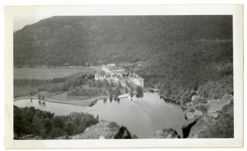 Panorama view of the Balsams Hotel and Lake Gloriette, taken from Table Rock.