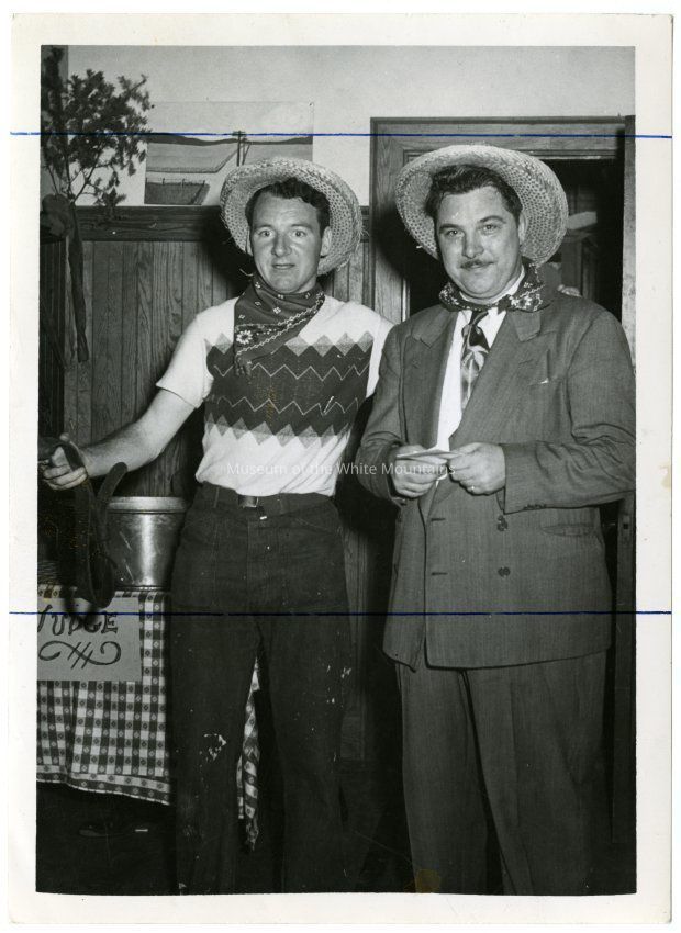Photograph of two men dressed in hats and bandanas for a Wild West themed event at the Balsams Hotel.