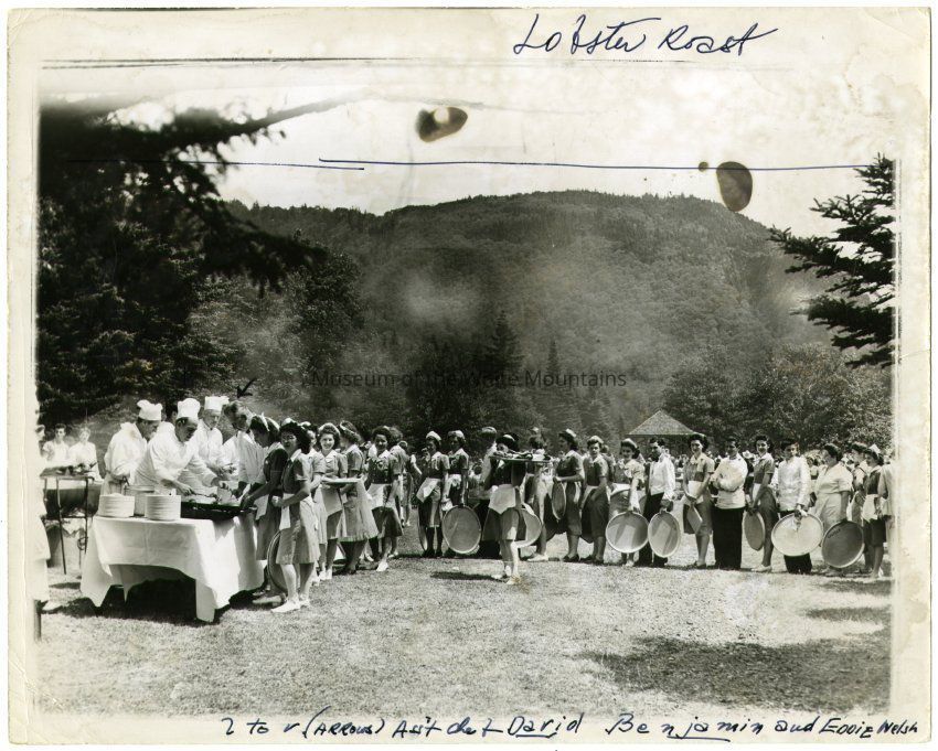 People, Dining, Hotel employees, Outdoor cookery, Trees, MountainsSearch Terms