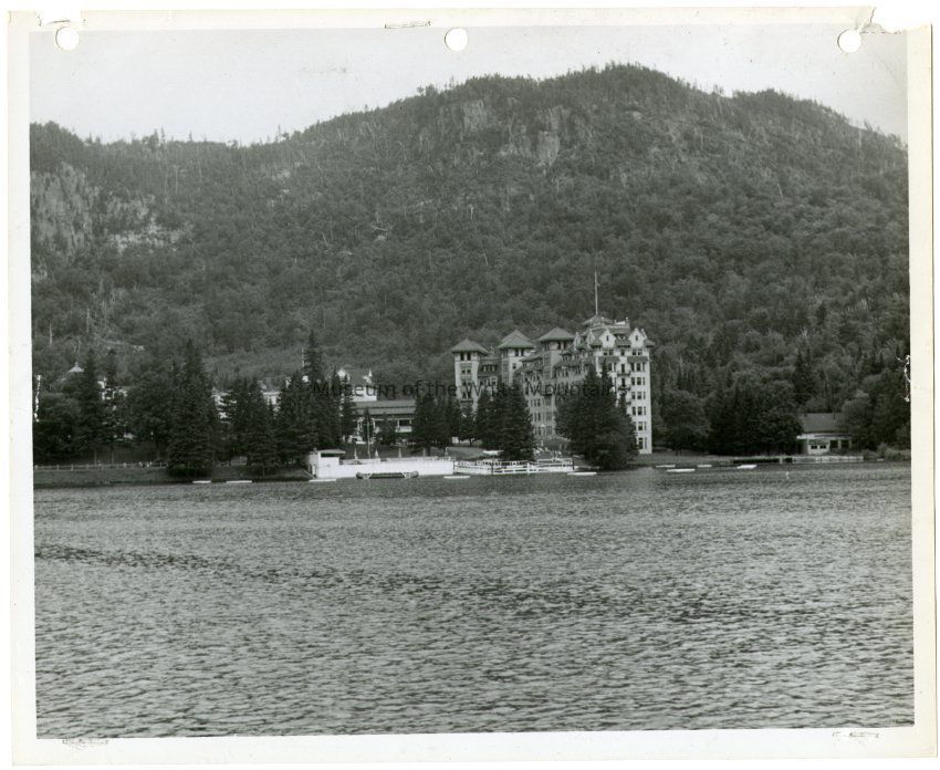 Photograph of the Balsams Hotel across Lake Gloriette.