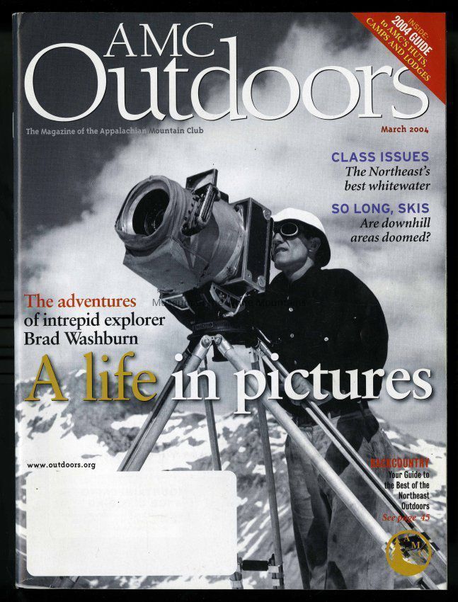 This item is a Magazine for the Appalachain Mountain Club. Inside it has a 2004 guide to the AMC's Huts, Camps and Lodges. It also features an article about "The adventure of intrepid explorerer Brad Washburn: A life in pictures." It also has articles about whitewater rafting and skiing.