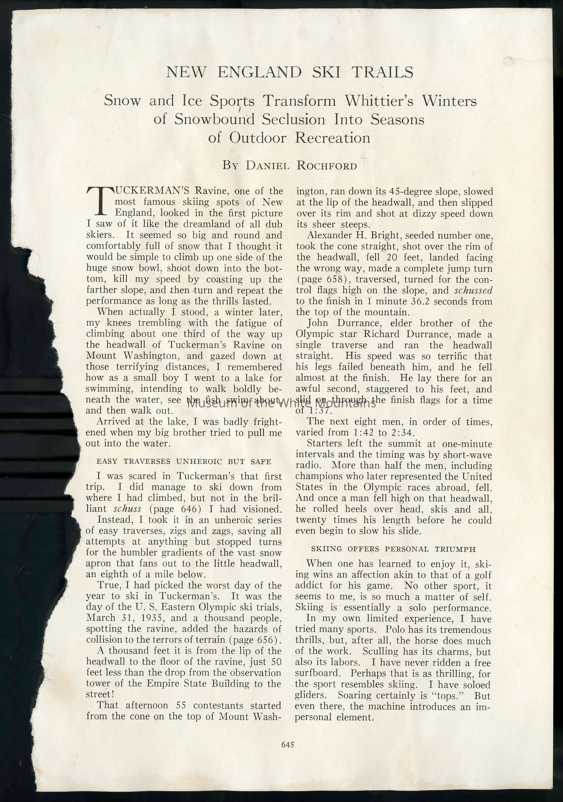 National Geographic Magazine, Tuckerman Ravine (Coos county, New Hampshire : valley), Adervtisements, Articles, Trails