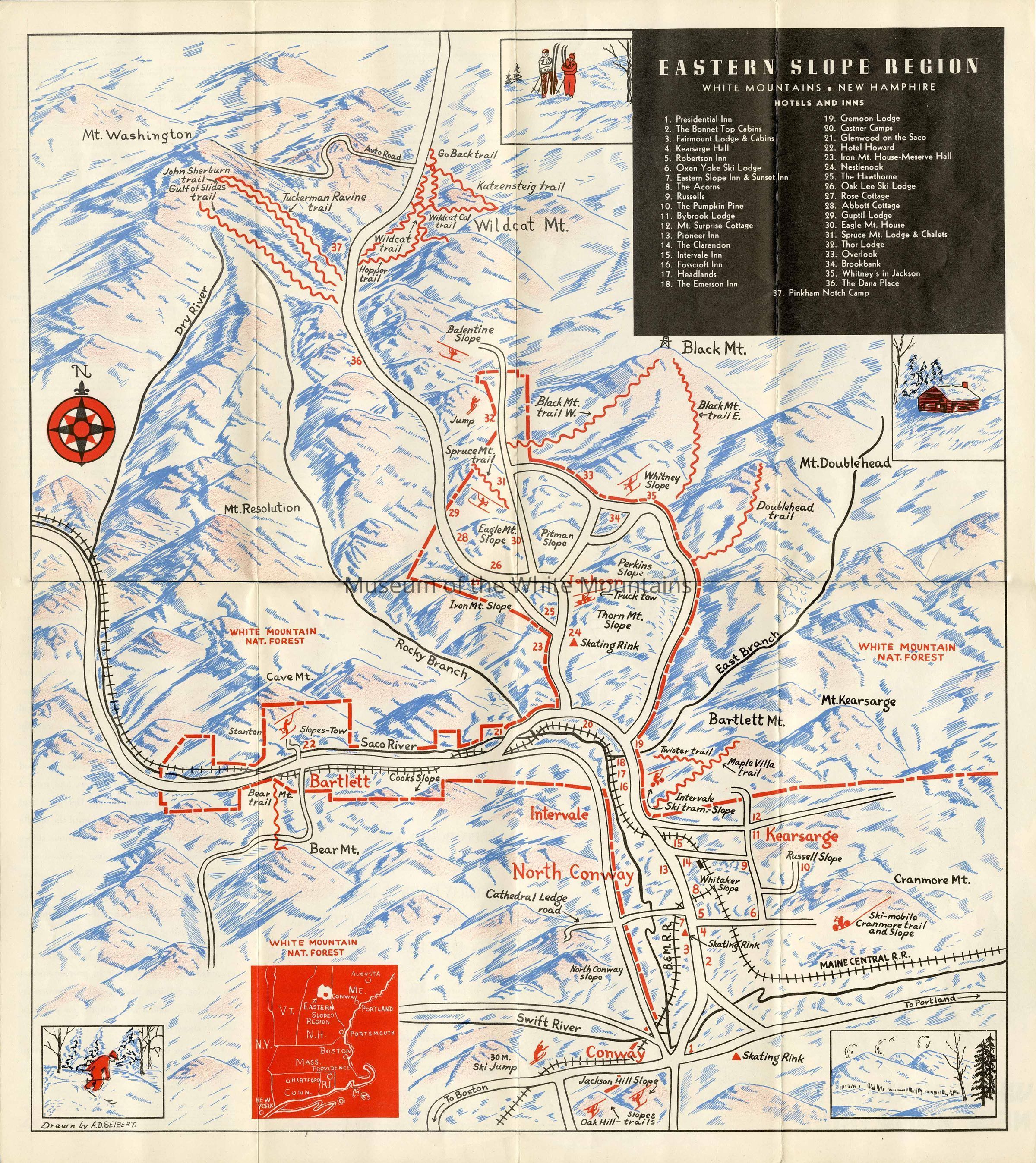 Bartlett (Carroll county, New Hampshire : inhabited place), Conway (Carroll county, New Hampshire : inhabited place), Cranmore Mountain (Carroll county, New Hampshire : peak), Eastern Slope Region Incorporated, Eastern Slope Ski Club, Intervale (Carroll county, New Hampshire : inhabited place), Jackson (Carroll county, New Hampshire : inhabited place), Pinkham Notch (Coos county, New Hampshire : valley), Ski Schools