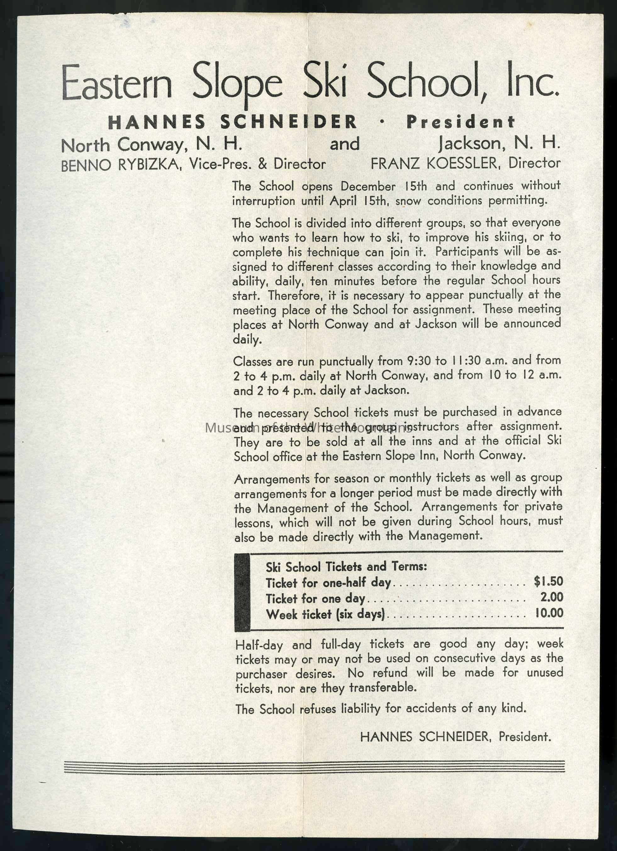 Eastern Slope Ski Club, Jackson (Carroll county, New Hampshire : inhabited place), North Conway (Carroll county, New Hampshire : inhabited place), Ski Schools