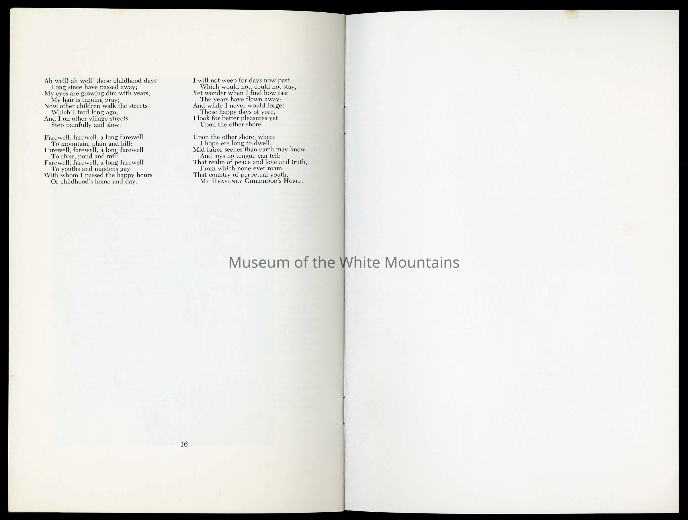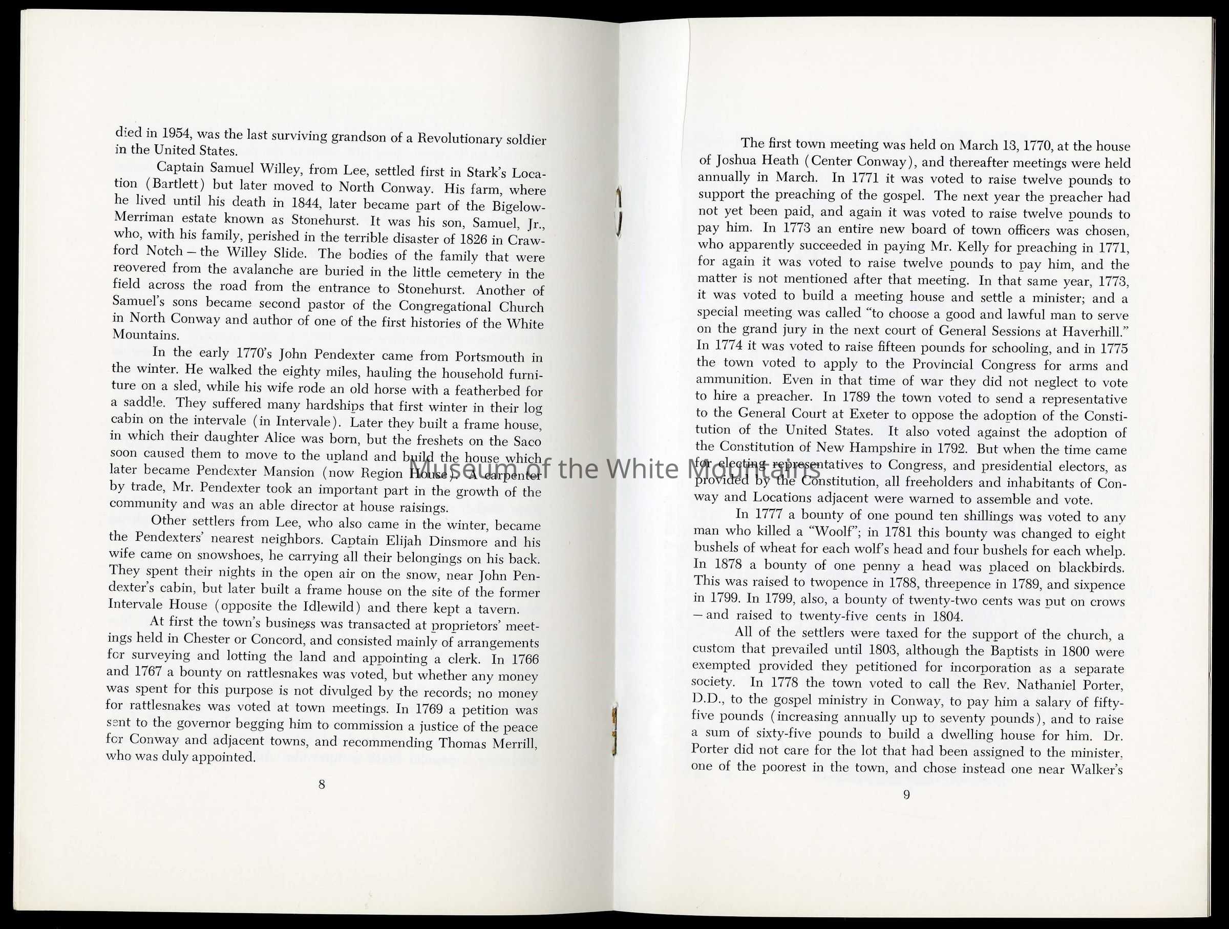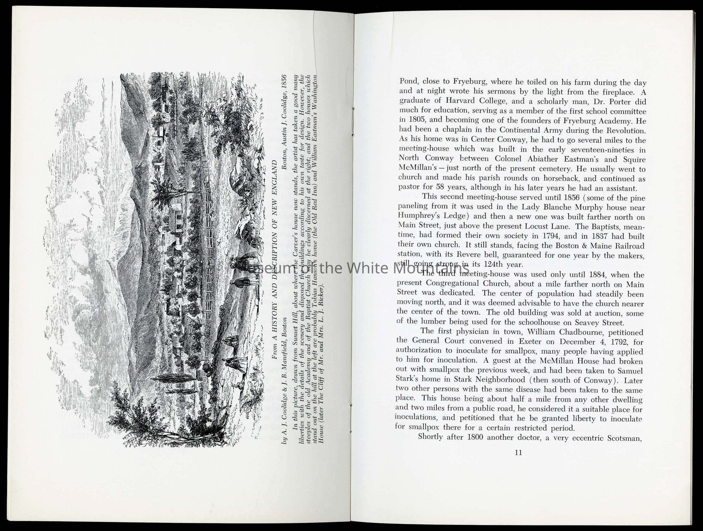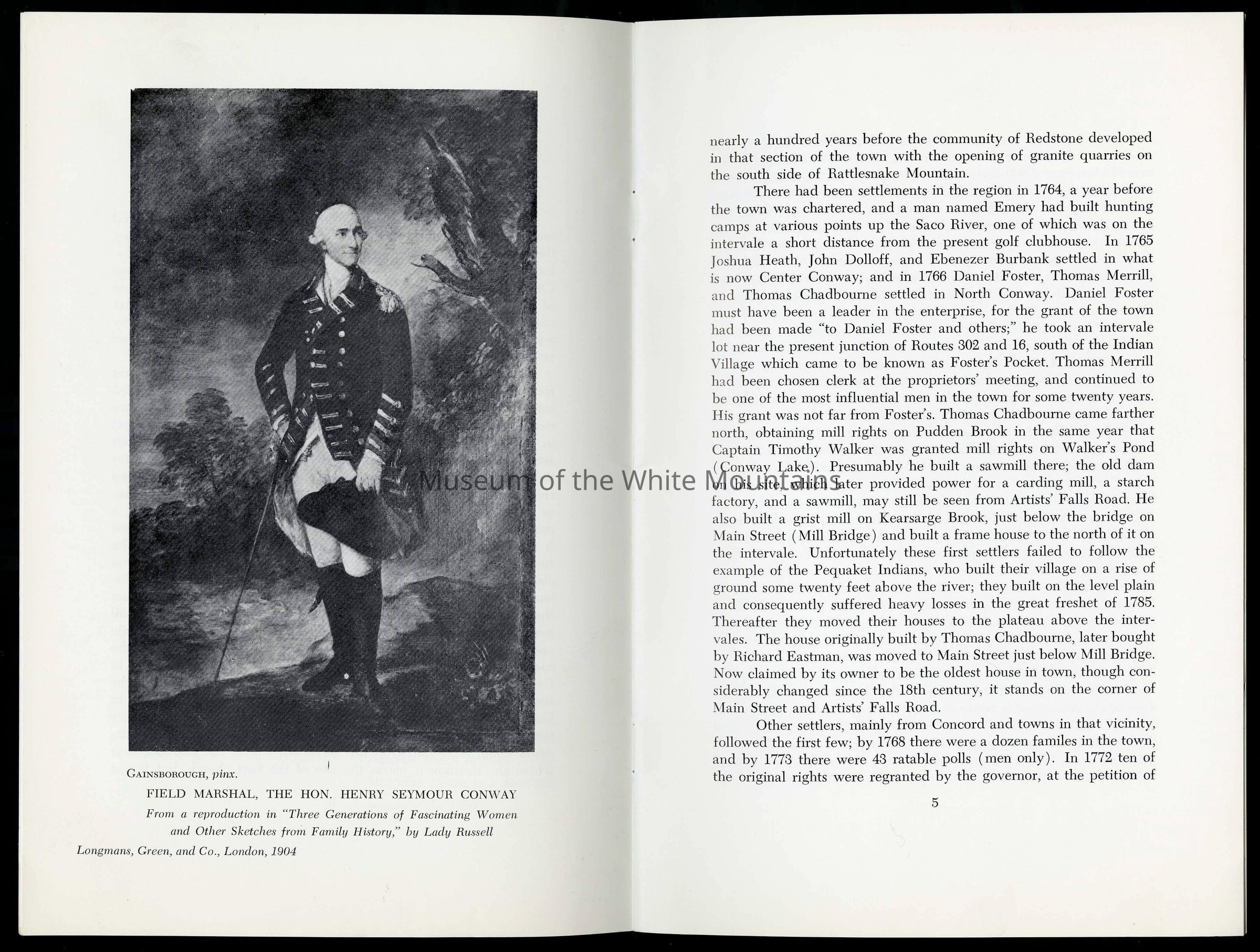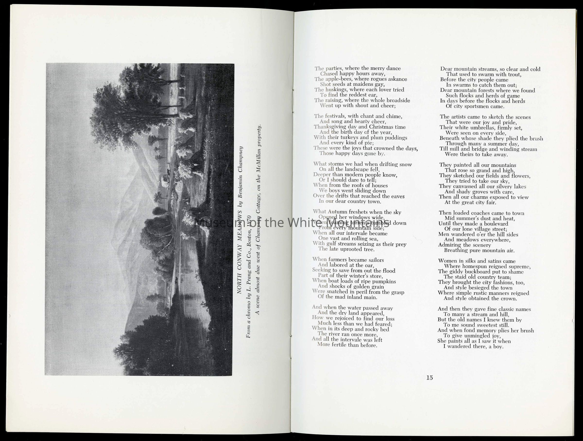 This item is an instructional phamphlet on Historic North Conway. It includes old paintings and images about North Conway, as well as poems and a brief history. This is Part 1 of an unknown amount of parts.Collection