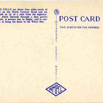 A postcard containing a color portrait image of Glen Ellis Falls, Pinkham Notch.