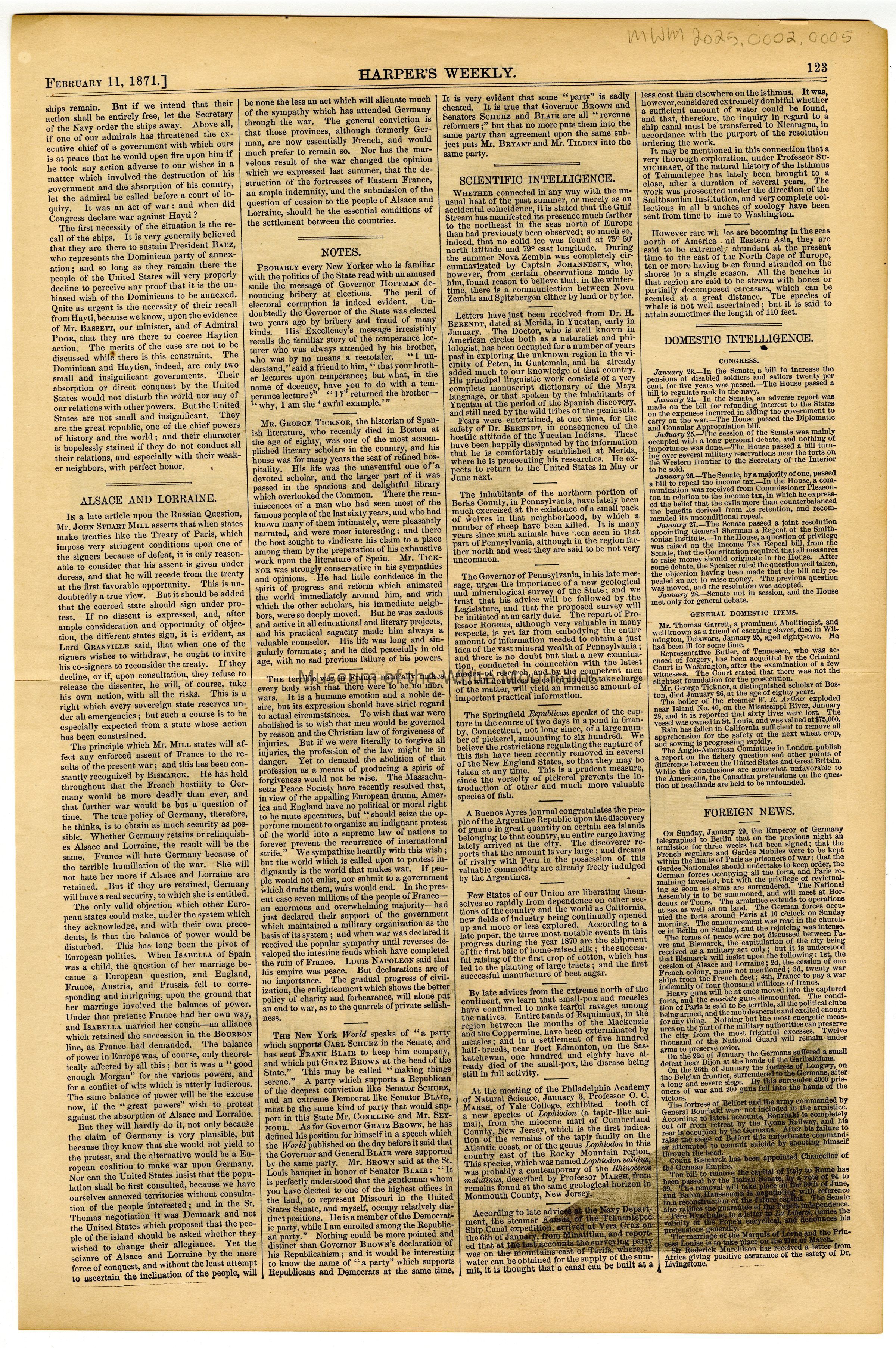 124 HARPER'S WEEKLY February 11, 1871Entry/Object ID