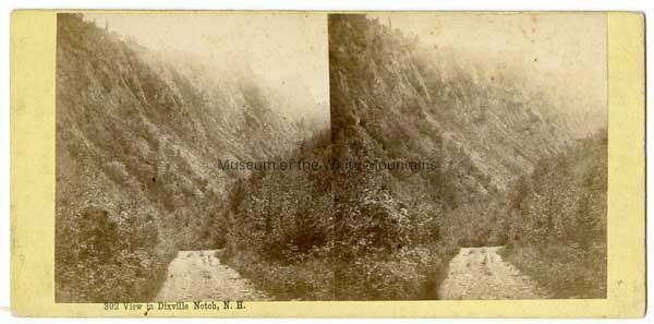 View of a road in the mountains in Dixville Notch. On the back: "Views among the White Mountains,The Far West; Among the Camps on the Potomac, &c. &c"