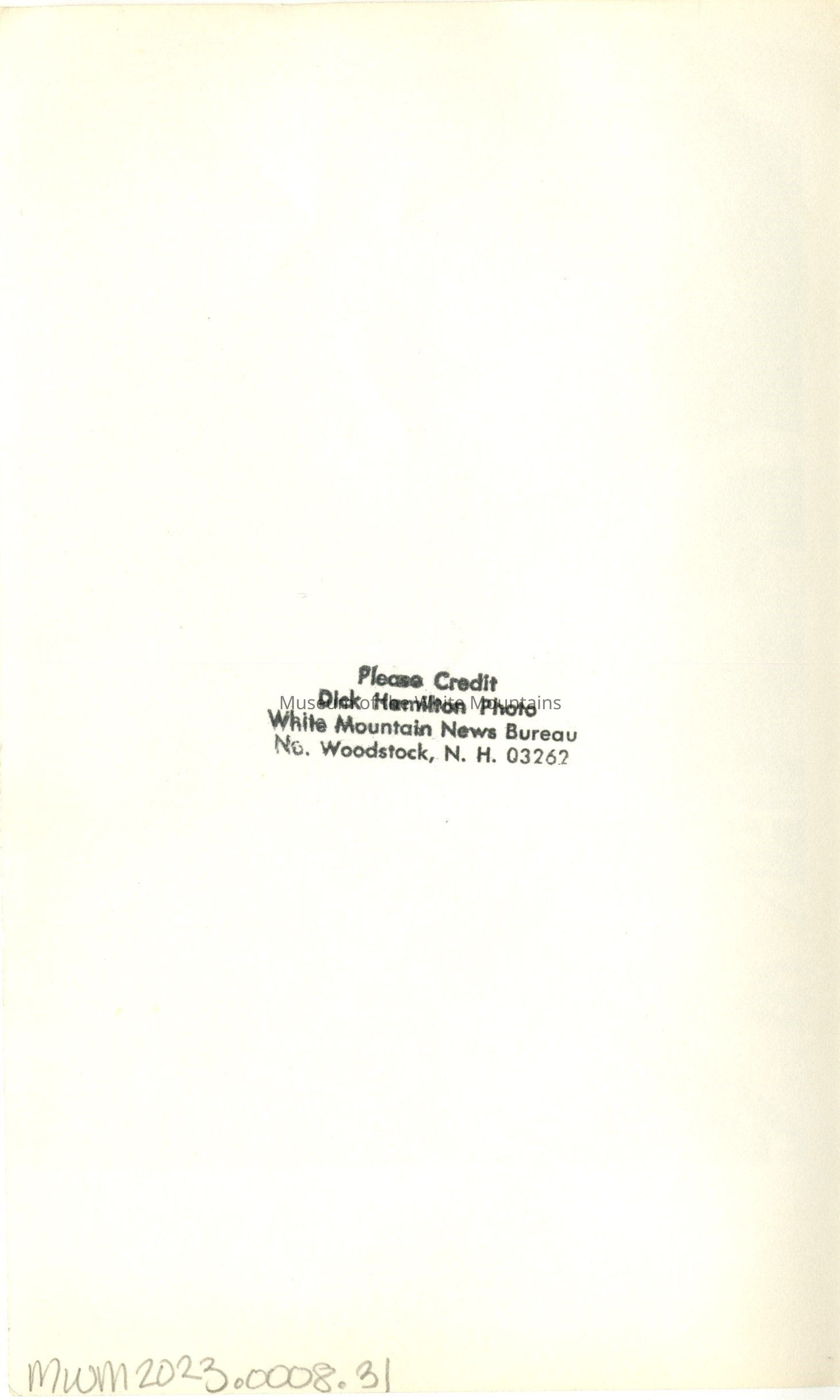 Back description: "Please Credit Dick Hamilton Photo White Mountain News Bureau No. Woodstock, N.H. 03262"Photograph Details