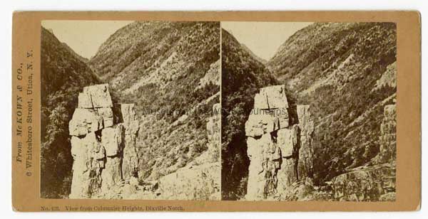 View of Columnar Heights at Dixville Notch. Has the stamp with "EX. collection of Viv & Ron Lowden" stamped on the back.