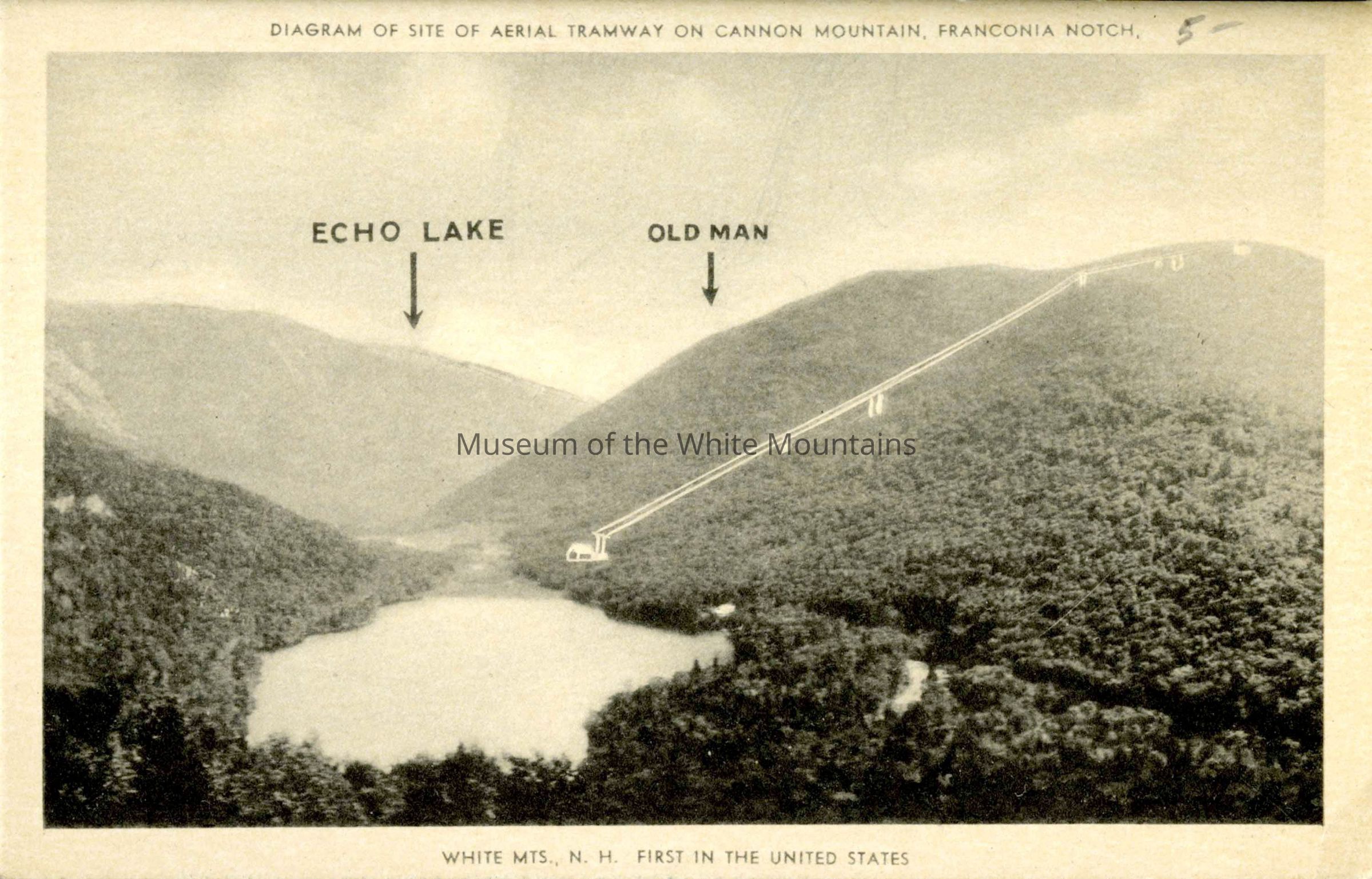 Franconia Notch (Grafton county, New Hampshire : valley), Cannon Mountain Aerial Tramway, Cannon Mountain (Grafton county, New Hampshire : peak), White Mountains (New Hampshire : mountains), New Hampshire (United States : state), Old Man of the Mountain (Grafton county, New Hampshire : peak), Echo Lake (Grafton county, Carroll county, New Hampshire : lake)