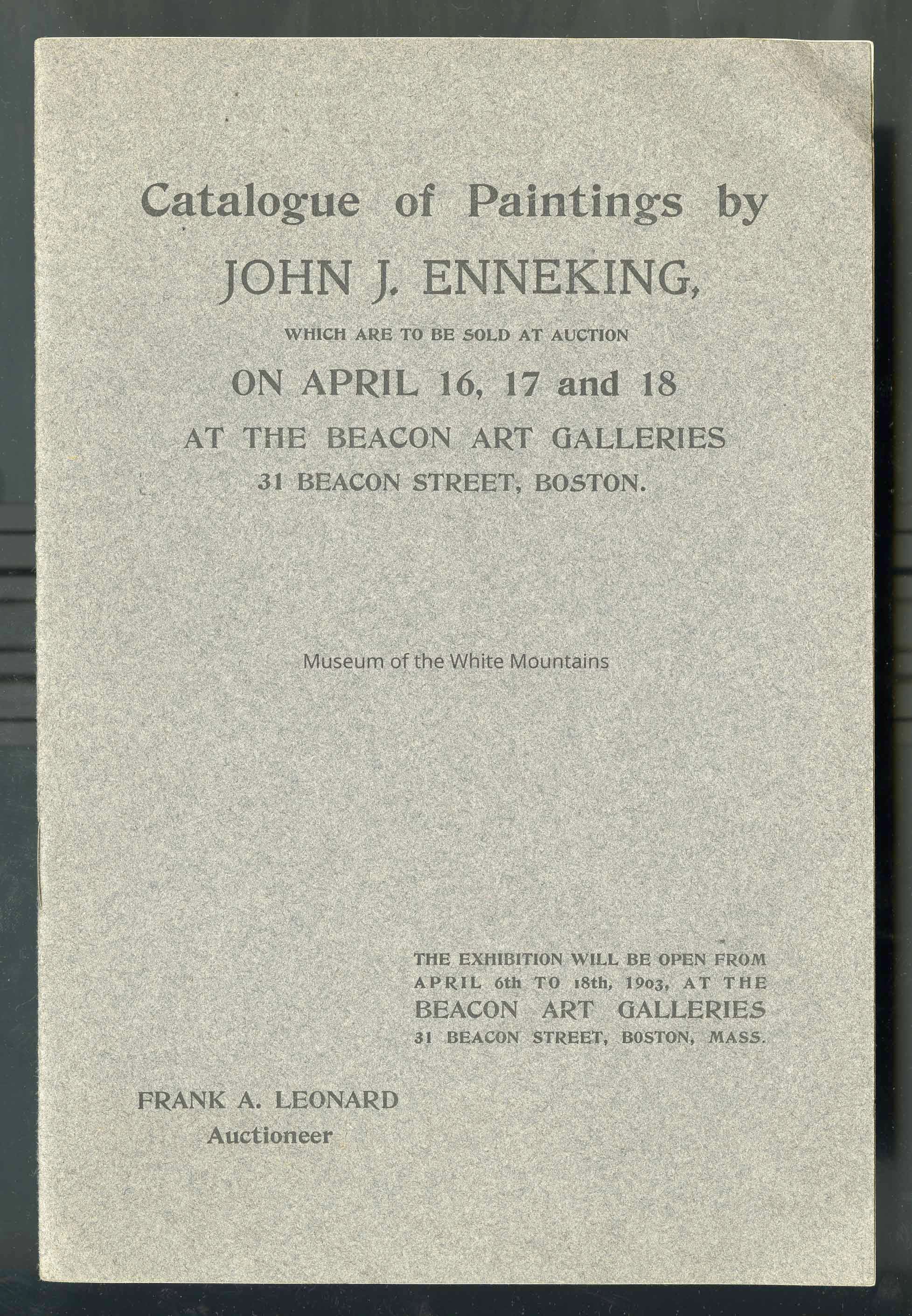 This item is a catalog of paintings by John J. Enneking put out by the Beacon Art Galleries. They were on display from April 6th to the 18th in 1903 and then the paintings were sold from the 16th to 18th of April. About 50 paintings were sold every day.Collection