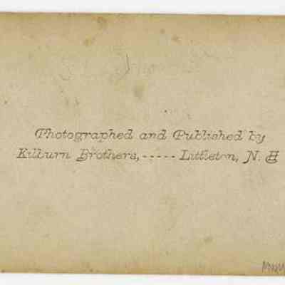 View of Dixville Notch from a field with a single person in the foreground. Has "Thom L[Not Legible]" written on the back.