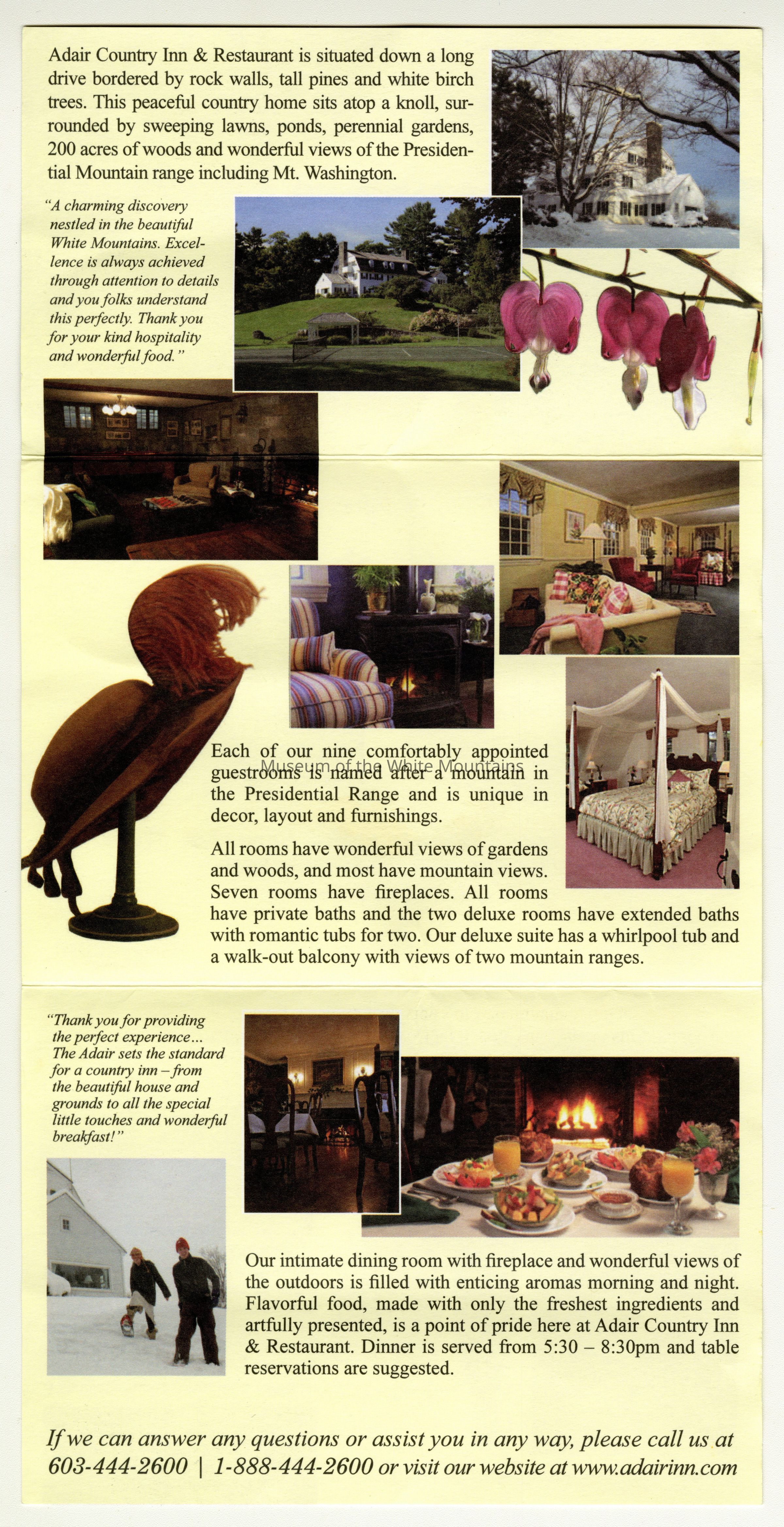 Bethlehem (Grafton county, New Hampshire : inhabited place), Grafton (New Hampshire : county), Adair Country Inn & Restaurant (Grafton county, New Hampshire : inhabited place)