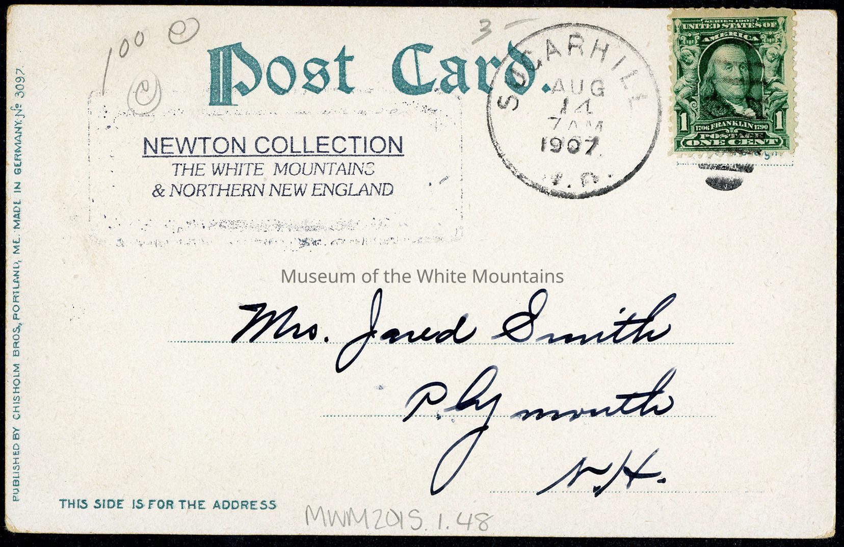 Back Description: On the front side of the image is a short message to whomever the post card is intended. On the back is a name and town.