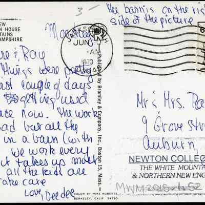 Back Description: A letter is written on the back, with a stamp with a date and a postal stamp.