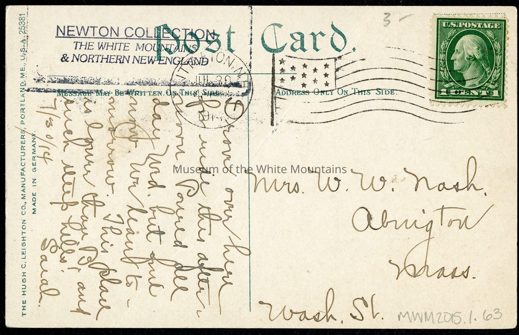 Drove over here fro the ride this after-noon. Poured all day Wed. but fine now. We leave to-morrow. This place is lower than B. (?) and such steep hills! Sarah 7/30/14Acquisition