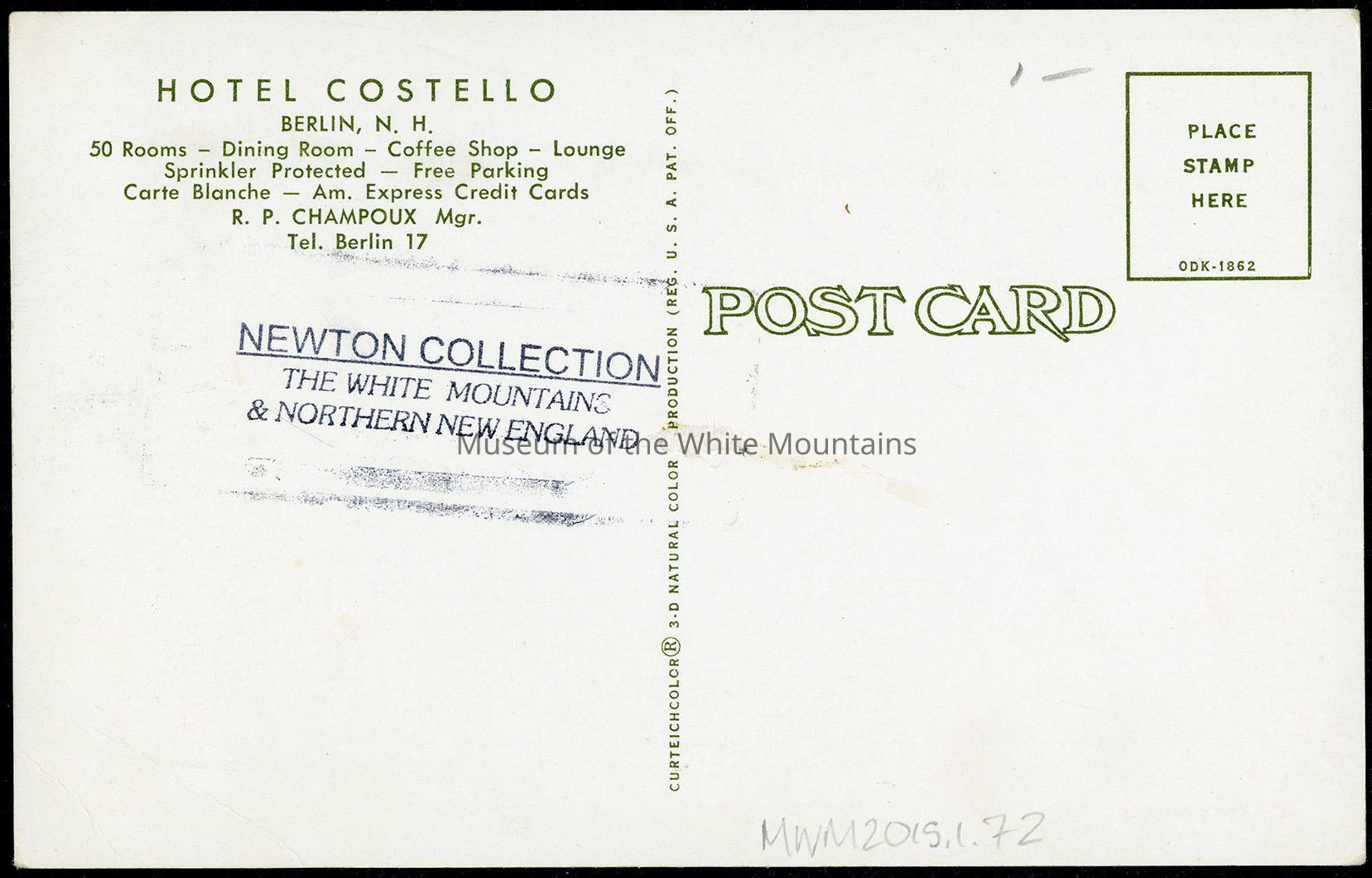 Hotel Costello, Berlin, N.H.Entry/Object ID